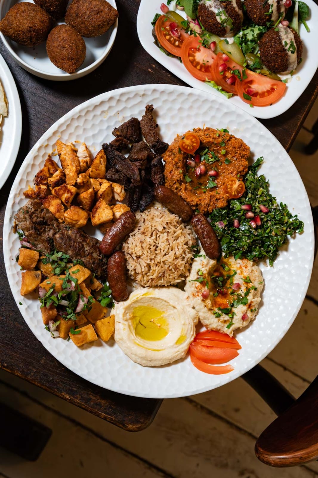 À l’origine, dans la cuisine du Levant, les mezzés sont une composition généreuse de plats servis en même temps. Cette forme de repas se prête parfaitement aux grandes tablées où chacun peut « picorer » chaque mezzé avec un bout de « saj » (pain plat libanais). Avec ses 40 couverts, Afendi a réinventé les mezzés pour convenir à de plus petites tables. Il en a donc fait l’offre phare du restaurant sous forme de formules à partager. Solo, Duo ou Régal (4 personnes) on retrouve dans ces formules les classiques de la cuisine libanaise. Taboulé, Kafta, Chawarma, Houmouss ne représentent que la moitié de la formule, autant dire qu’elle n’est pas faite pour les petits mangeurs. Si ces formules sont les plus représentatives de l’amour du partage à la libanaise, le reste de la carte est tout autant généreux. Grillades de viande juteuse aux herbes, assiettes de houmouss, mezzés individuels chauds ou froids et même desserts libanais, voilà ce qui vous attend chez Afendi.