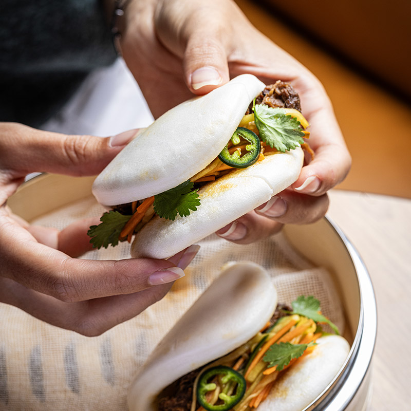 La partie salée explore la street food haut de gamme. Parmi les propositions : un Tamago Sando japonais préparé avec des œufs bio, un croissant jambon-fromage au comté affiné 30 mois, un croque-madame à la truffe ou encore un Gua Bao au bœuf inspiré de la cuisine coréenne. Des produits d’exception complètent la sélection, comme le Jamón Pata Negra Bellota Cinco Jotas, la burrata crémeuse ou le saumon fumé.