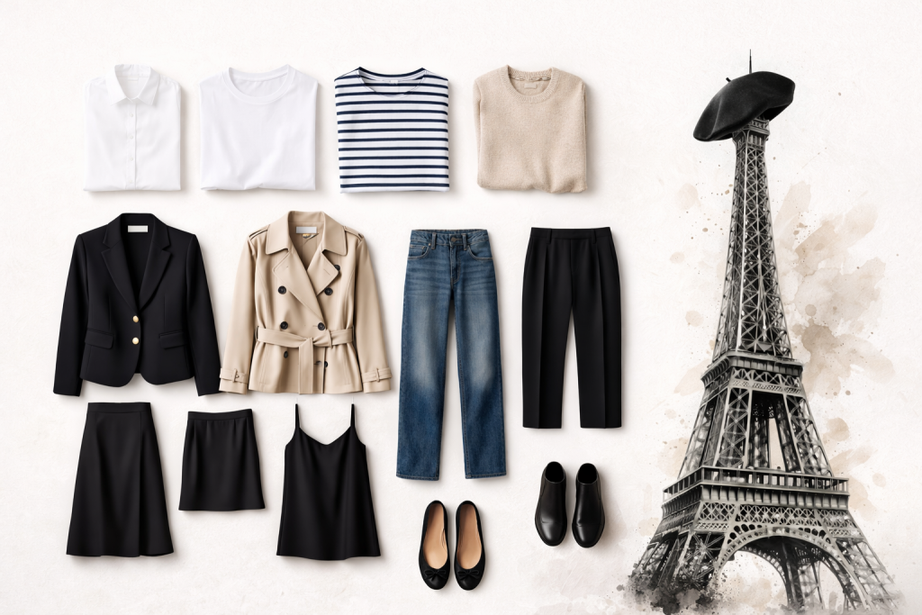 Une garde-robe capsule parisienne repose sur quelques essentiels capables de dialoguer entre eux avec évidence. Bien choisies, ces 12 pièces permettent de composer de nombreuses silhouettes sans jamais donner une impression de répétition. Elles dessinent un vestiaire cohérent, portable et chic, fidèle à cette idée très parisienne selon laquelle l’allure naît souvent de la simplicité.