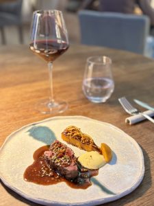 Enfin, le bœuf de Salers rôti achève la partition sur une note charnelle, adoucie par le pressé de butternut et la mousseline de potimarron à la verveine, subtile et enveloppante.