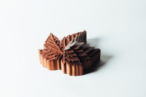 Au cœur du vignoble bordelais, Anthony Chenoz signe une bûche en forme de feuille de vigne, hommage poétique à la nature.