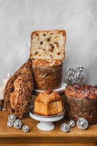Panettone nature ou panettone chocolat (12 €) : une mie filante grâce au levain et des parfums délicats.