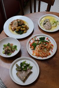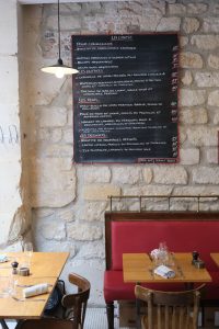 L’ardoise met à l’honneur les abats avec des plats comme la cervelle de veau pochée au beurre citronné, mais aussi des incontournables du bistrot : terrines maison, œufs mayonnaise, osso buco de veau fermier, magret de canard du Périgord. Côté sucré, la carte propose des desserts classiques réconfortants, comme la crème citron ou l’île flottante.