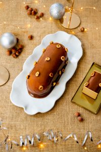 Croustillant noisette, crèmeux fondant, glaçage gianduja et éclats torréfiés… Cette bûche généreuse évoque la chaleur d’un après-midi d’hiver au coin du feu. Elle joue sur la rondeur, le croquant, et ces notes grillées qui rappellent les plaisirs simples de la saison.
