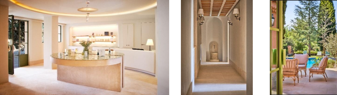 Le nouveau spa de 400 m², ouvert aux Aixois a été imaginé comme un « Atelier sur jardin » par la décoratrice Marion Mailaender. Il inclut des espaces intérieurs dédiés au bien-être et une terrasse orientée vers la piscine et les jardins du Pigonnet.