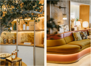 Le bois est le matériaux à la base de tous les projets de l’agence MOHA. Il offre un aspect naturel et chaleureux aux espaces de vie. De façon plus générale, Céline et son équipe misent sur des matériaux bruts et authentiques comme la pierre, le rotin, la terre cuite ou la céramique. Le choix des matériaux est crucial et contribue à l’expérience immersive du lieu. D’origine italienne, Céline s’inspire de ses moments passés en Italie pour définir l’identité des lieux qu’elle aménage. Elle y intègre aussi des odeurs importantes à ses yeux. Pin chauffé par le soleil, herbe fraîchement tondue, café, fleurs de figuiers et d’orangers. Pour Céline, les odeurs sont « de véritables madeleines de Proust », qui peuvent installer à elles seules une ambiance précise. Le choix des couleurs n’est pas non plus laissé au hasard. Du sable au caramel, en passant par l’ocre ou l’argile : le jaune, couleur signature dans l’architecture de MOHA, est décliné dans toutes ses nuances pour rappeler les teintes de la terre.