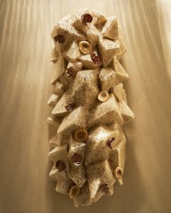 Réinterprétation de la pâtisserie signature du Chef, cette création puissante marie biscuit et crémeux noisette, praliné pur, ganache montée et éclair garni. Une bûche de caractère, à l’image de la collaboration avec la CUPRA Tribe.