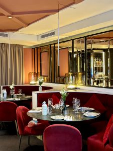Le midi, une atmosphère de brasserie parisienne élégante, prisée par une clientèle d’affaires. Le soir, le lieu se transforme, gagnant en énergie et en convivialité, presque festive.