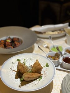 Les tables nappées, les lumières douces et la décoration soignée évoquent le faste discret des palais moghols. Mais derrière ce décor luxueux, c’est Sanjeev Bhalla, le chef et hôte des lieux, qui capte toute l’attention : il passe de la cuisine à la salle, échange avec les clients, partage sa passion et raconte les histoires qui se cachent derrière chaque plat.