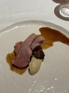 L’Agneau : parfaitement cuit, avec une déclinaison d’artichaut et de citron confit, un jus au Moscato d’Asti et une subtile note de sumac qui élève le plat.