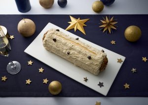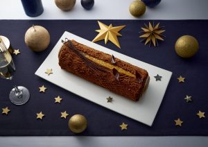 Autre pièce maîtresse de la collection : la bûche Chocolat – Croustillant Kataïfi. Ici, l’inspiration grecque se fait gourmande et audacieuse. Le croustillant de kataïfi au chocolat s’allie à un gianduja au chocolat au lait, un biscuit soufflé, une compote de cédrat et une mousse chocolat parfumée à la fève de tonka. Une bûche intense, chaleureuse, pensée pour les amateurs de chocolat aux notes orientales.