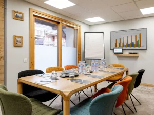 Retrouvez des espaces de travails, dont 3 salles de réunions de 20 à 70 m², personnalisés et illuminés par la lumière du jour. Le chalet permet également de réserver des espaces au Palais des Congrès, accessible à 4 minutes à pied.