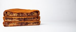 Une feuilletée pur beurre d’Isigny, parfaitement dorée, renferme un cœur de poires fondantes Maison Colom, rencontrant une ganache chocolat noir Venezuela 62 %.