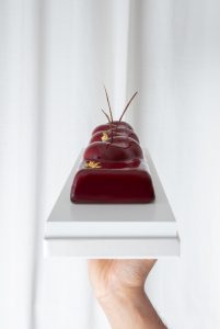 Sous son rouge profond, immédiatement identifiable, la bûche Rouge Pantone 194 s’impose comme une pièce de haute pâtisserie — magnétique sans être ostentatoire.
